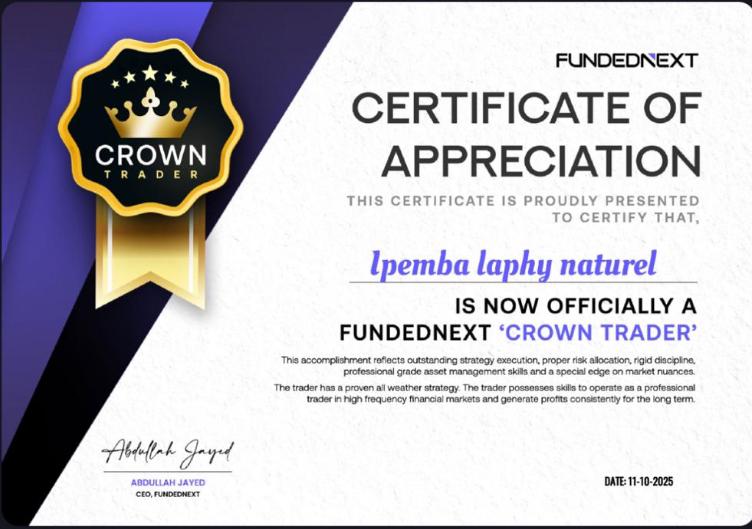 Je tenais à vous remercier sincèrement pour ce mentorat , qui a changé ma vision du marché et ma façon de voir et réfléchir devant un graphique, je vous en suis très reconnaissant et je vous ramène ce certificat comme preuve d’un apprentissage qui a porté ses fruits.